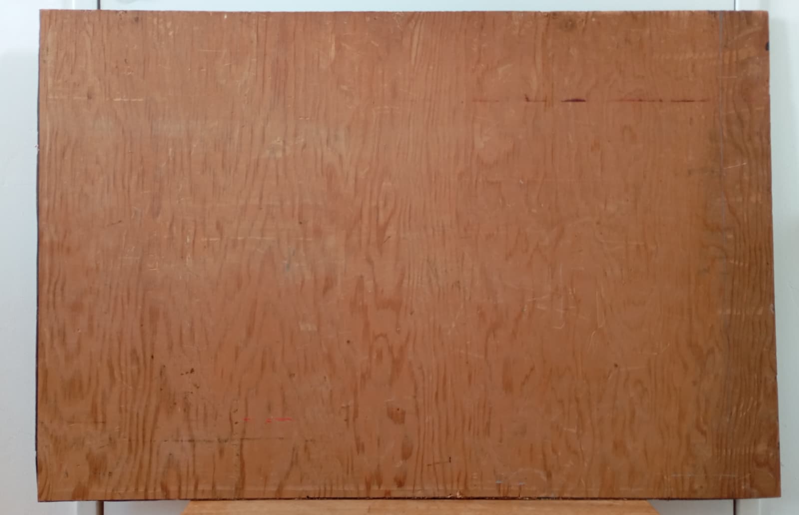 Marques du temps visibles (manques de peinture) sur le tranche basse du tableau.