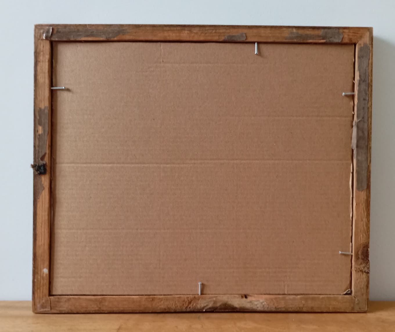 Hauteur : 27 cm, largeur : 32 cm. Sans cadre : 19 x24 cm.